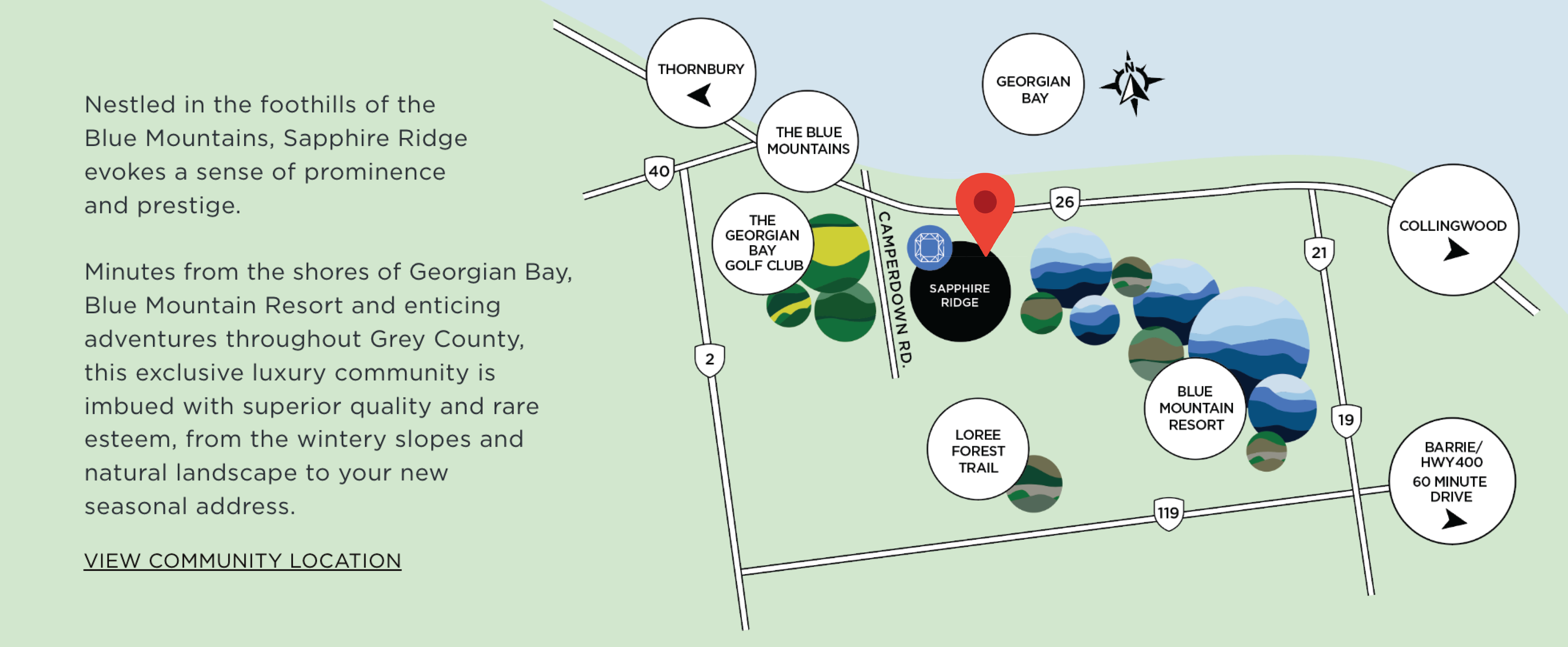 Sapphire Ridge is luxury living by design. Expertly curated, transformative in layout yet timeless in style. The enticing quality of this four-season retreat is perfectly illustrated in its northern aesthetic and contemporary elevations—where natural elegance and a relaxing lifestyle are inextricably balanced.